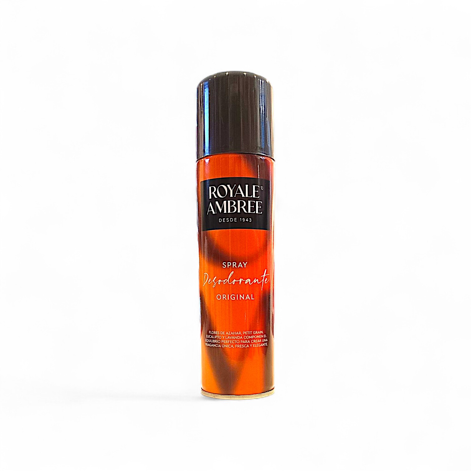 El desodorante spray Royale Ambree 250ml de Legrain, un clásico atemporal que combina frescura, protección y la fragancia elegante de siempre.