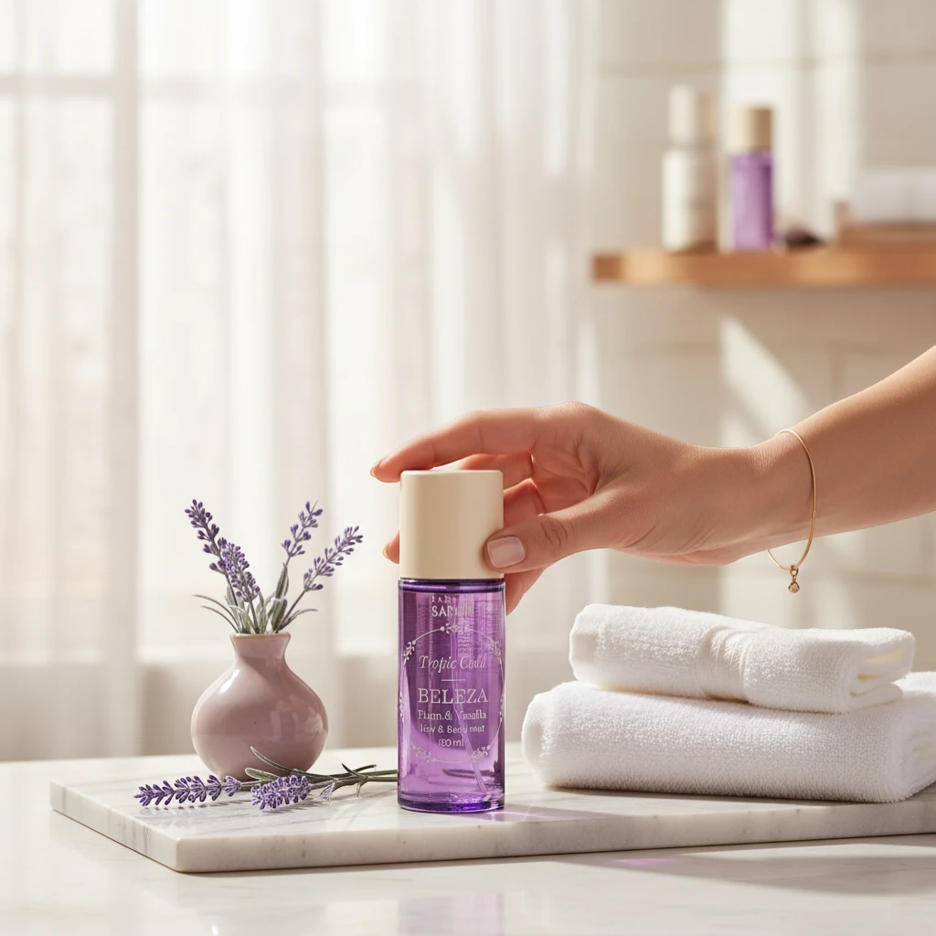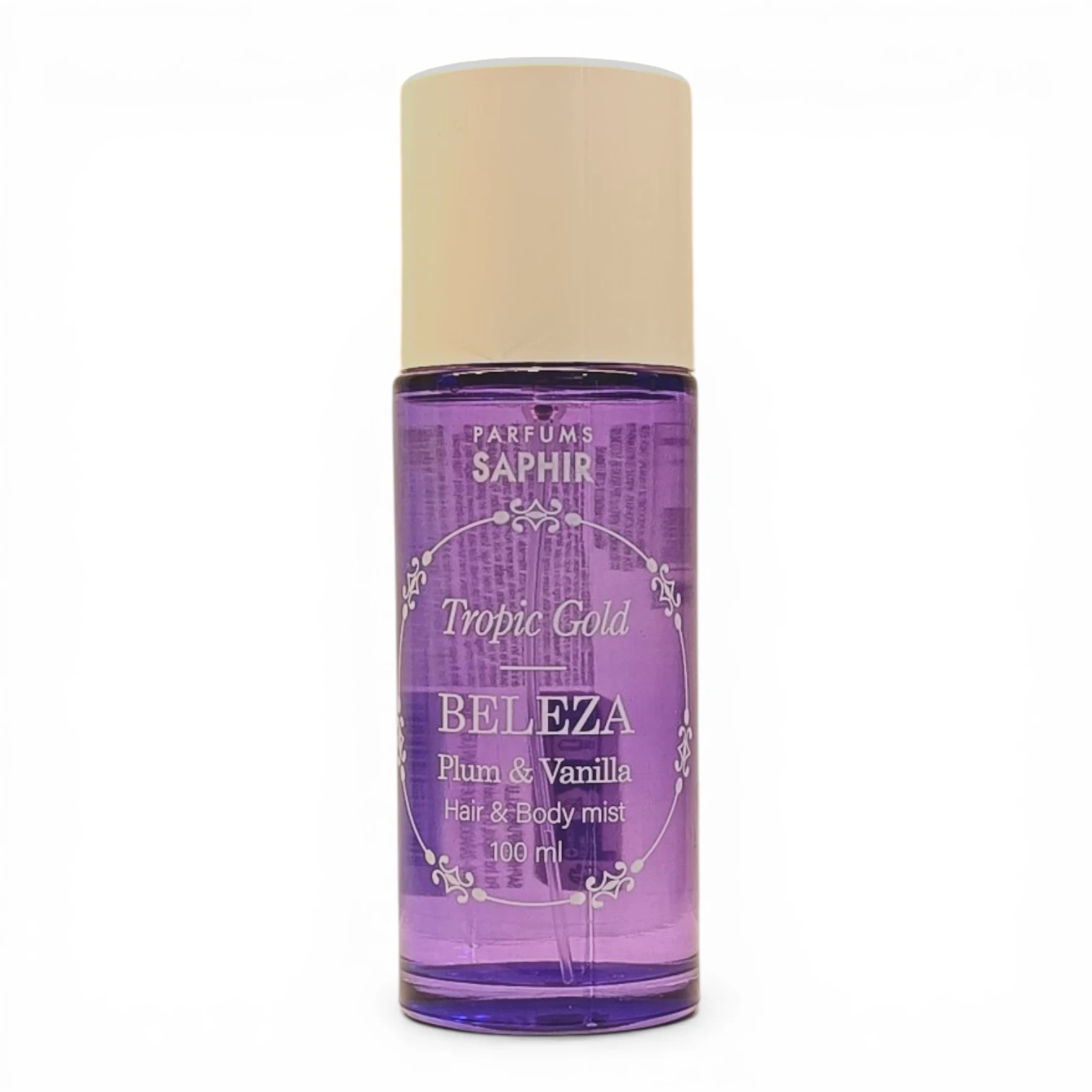 El Tropic Gold Hair & Body Mist Beleza es una bruma perfumada de uso dual para cuerpo y cabello. Sus notas de ciruela y vainilla crean una fragancia cálida y sensual, ideal para quienes buscan un aroma dulce y duradero.